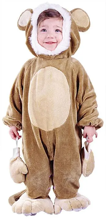 A Sweet Little Monkey, So Soft And Cuddly! Costume Includes: Hooded jumpsuit with attached feet covers, attached ears and mittens, back snaps and snap open in-seam for easy diaper changes. Available sizes: