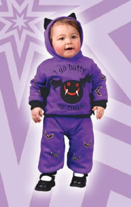 Anyone Would Love Having This Bat Around!Costume includes: 2 piece suit with hooded top and ears attached. Cloth bat wings attached under arms.Available sizes: