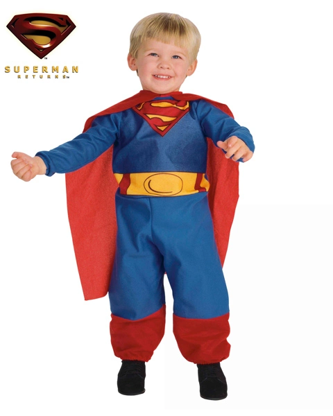 Some of us are just born into greatness. With our Superman Costume for toddlers your child can be one of those lucky few this Halloween. This simple yet effective two piece costume includes a jumpsuit modeled after Superman’s garb including his signature cape. The jumper zips in the back and has a blue body down to the red ankle cuffs. The Superman “S” logo is of course done in red with a yellow background, true to Superman style. The yellow belt has red loops printed on it and a buckle design as well. The red cape covers the back zipper and flows loosely off the rest of the costume for a genuinely authentic look. No amount of Kryptonite can kill a deal with a costume this realistic, so order one for your son today and make his first Halloween super for all the right reasons!