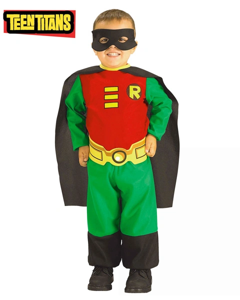 Here comes the Caped Crusader’s sidekick. This three-piece costume features a black mask, removable cape and jumpsuit. Jumpsuit has Robin crest emblazoned on the chest and attached utility belt. This Halloween Robin will be taking center stage. This good looking Teen Titan Robin costume for infants and toddlers will look totally adorable on your little baby or busy toddler. Comfortable and easy to put on and pull off, this is a great costume choice for your little one. Find what you’re looking for? If yes, please proceed to check out the accessories expertly chosen for this particular costume. Once you have what you need, feel free to purchase your item(s). If you order before 3:00 pm, we will mail your costume today. If you find that this costume isn’t the right one for you, please keep looking. We have thousands of costumes, just waiting for you to discover and enjoy. We offer high quality, affordably priced, officially licensed and unique costumes. We are confident that our prices and quality are amongst the most attractive, online.