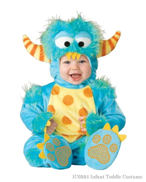 What a great idea! Yes the Infant Toddler Lil Monster costume should keep your baby safe while you enjoy the festivities at the Halloween party. The costume is warm, safe and durable – perfect for Halloween. Consisting of a lined zipper jumpsuit with blue arms and blue legs, the little one will feel comfortable. The belly of the jumpsuit, is yellow with brown spots. Looking at the shoulders and cuffs, there is fuzzy faux fur trim and the hood has horns, big eyes and teeth. All the usual standard safety and conveniences are added, including snap locks for quick and easy diaper changes and slip resistant pads on the booties, keep the baby from slipping. As mentioned, this outfit would be ideal for a Halloween party. Just zip the baby into the costume and enjoy yourself knowing that your child is safe. Pick a costume up today. * Features a lined zippered jumpsuit with faux fur accents, hood with horns and slip-on booties. * Features snap leg closure for easy diaper change. Slip-on booties have skid resistant bottoms and are intended for indoor use only.