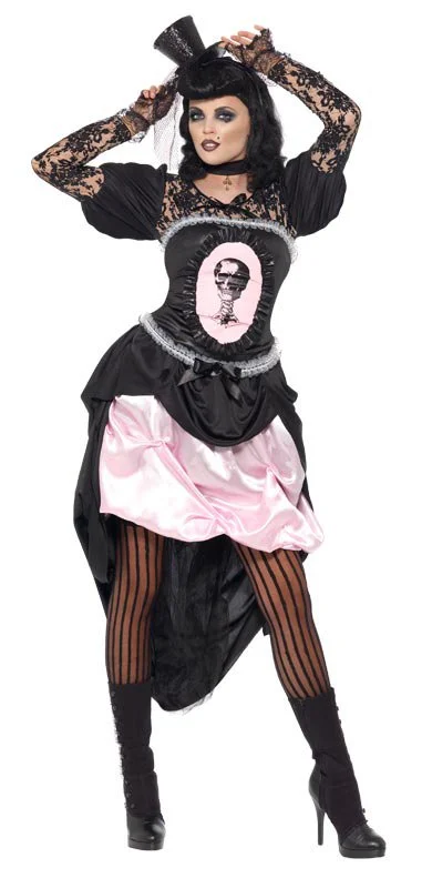 Macabre Burlesque – Dita Von Death Adult Costume is a modern twist on the classic short dress. This dress with lace and silk fabric. Pink skirt embodies femininity. Black lace to make the whole dress is full of mysterious.