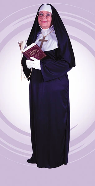 Let the discipline begin!Costume includes: Lightweight blackhabit includes dress with drape sleeves, 2 pieceveil and wimple,and gloves.Available size: