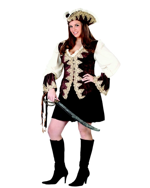 Beauty allures men but makes women envious! This Pirate Lady Plus Size Costume for Women gives you a nice looking, pretty deceiving look that could make you the coolest sophisticated smartest lady pirate. The dress gives you the modern pirate look with a matching hat. Feel sexy being naughty, sassy and cunning. This elegant costume catches the eyes of any visitors who expect a rugged looking pirate in the party. Who says pirates look cheap and dirty? This pirate lady costume gives you the classic but exotic look of a cutthroat, raider and sailor. Plunderer woman. that is what they would call you. You are a beautiful welcome menace to the maritime industry. Everybody would love to listen and watch you move like a gentle but rough pirate woman. Flirt hot and get rough in this costume. You are a sexy pirate of the sea.