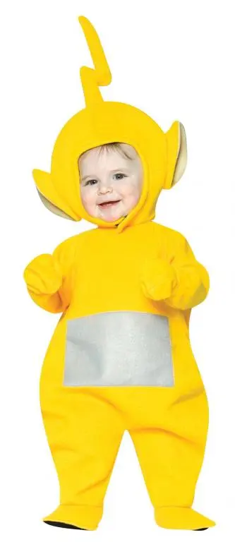 Laa-Laa includes: yellow hood with twirly aerial andyellow jumpsuit with mitten hands and yellow slipper shoes.