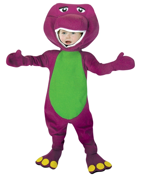 You will have your kids singing “I love you, you love me” with this adorable licensed Barney costume. This talking purple dinosaur has been entertaining children since the early 1990’s and he is still going strong. You and your child will absolutely be enchanted by this vividly-colored costume which is comfortable as well as light-weight for the little ones. Competitively-priced, you will not only find it affordable for this Halloween costume, but you will be tempted to buy all of your children’s costumes with us, as we offer one of the largest selections of costumes online. Check out our assortment of characters — both from the past and present — and get your whole family ready for Halloween, or other themed-party events. This particular costume is sized to fit a toddler from 3 to 4 years old, but we have many more costumes in store. * This is an officially licensed costume.